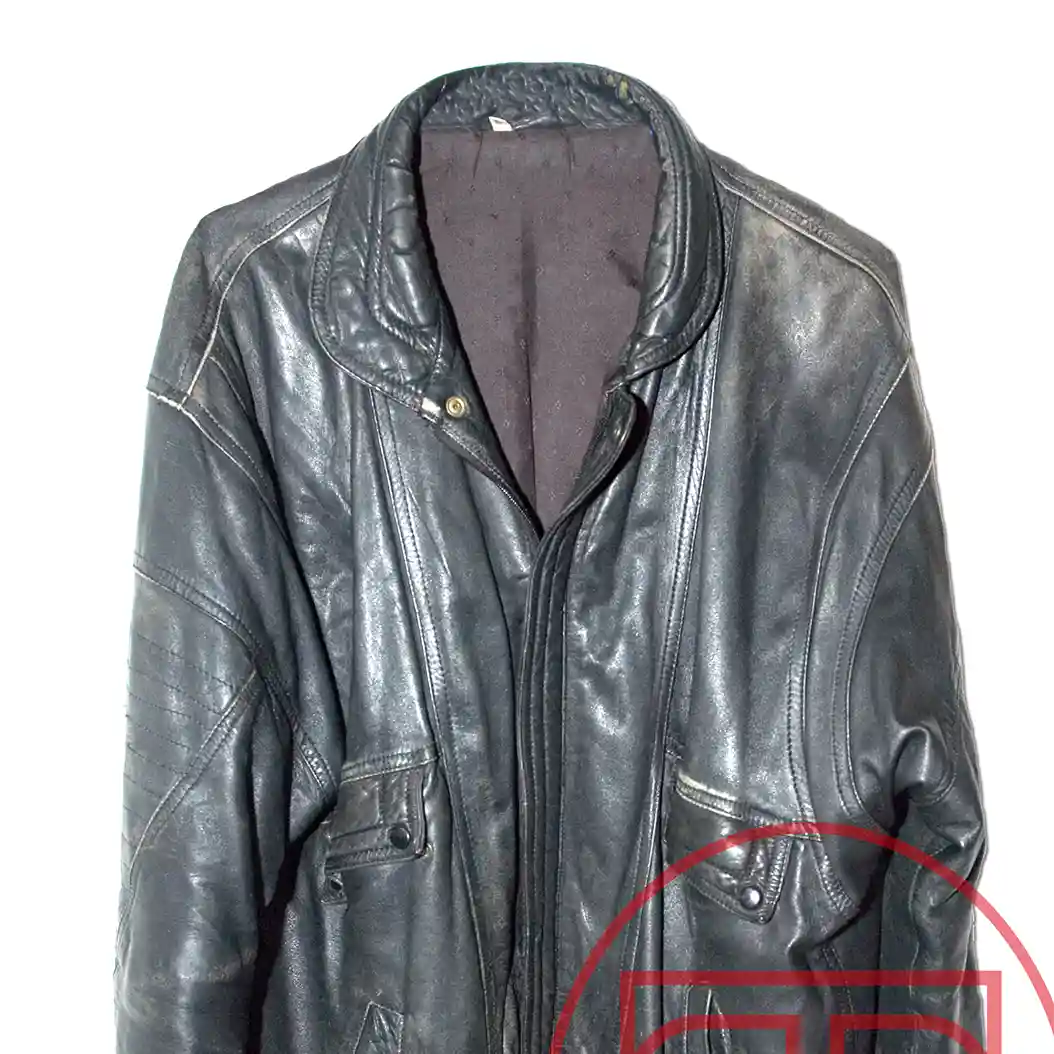 Esta cazadora de cuero natural ha sido limpiada, desodorizada, nutrida y recolorada de forma integral, devolviéndole su flexibilidad, color y elegancia original.