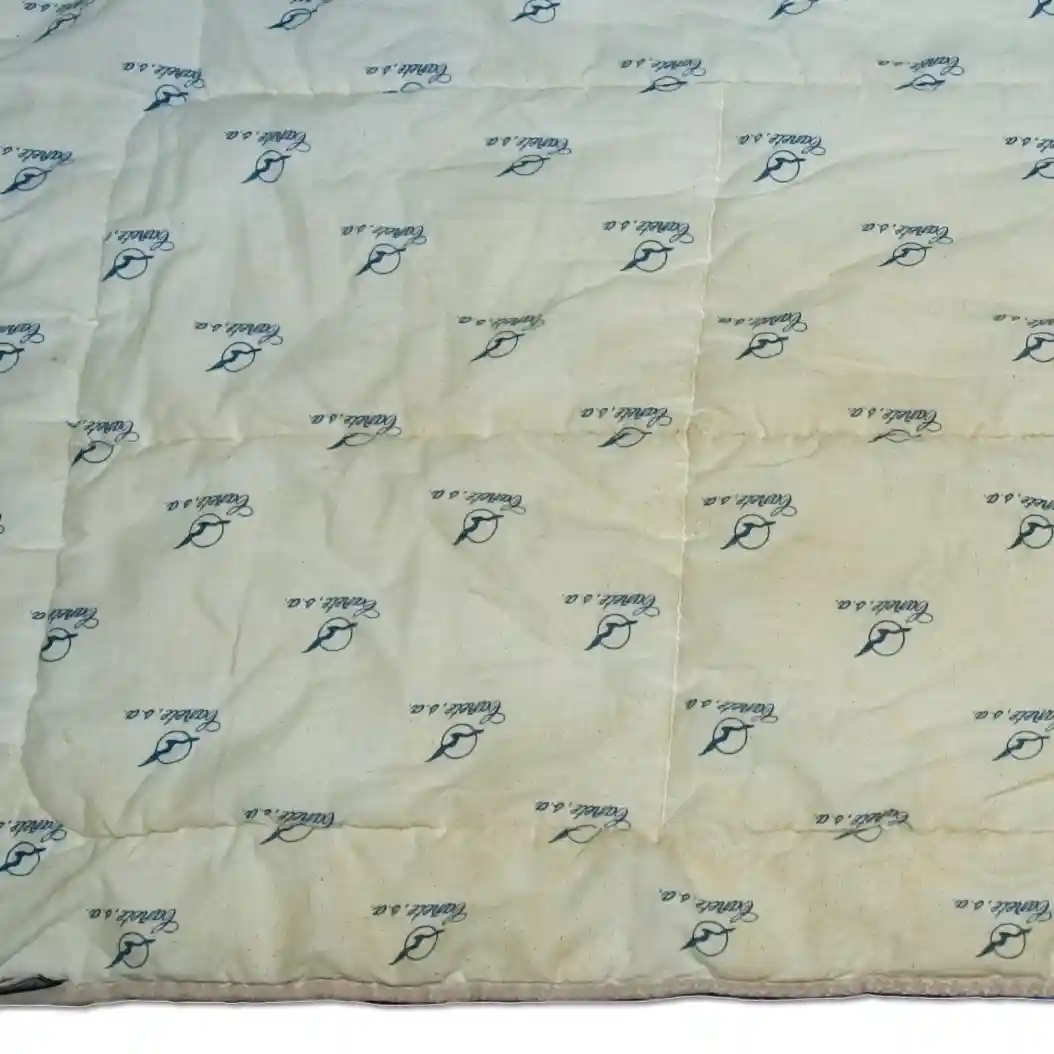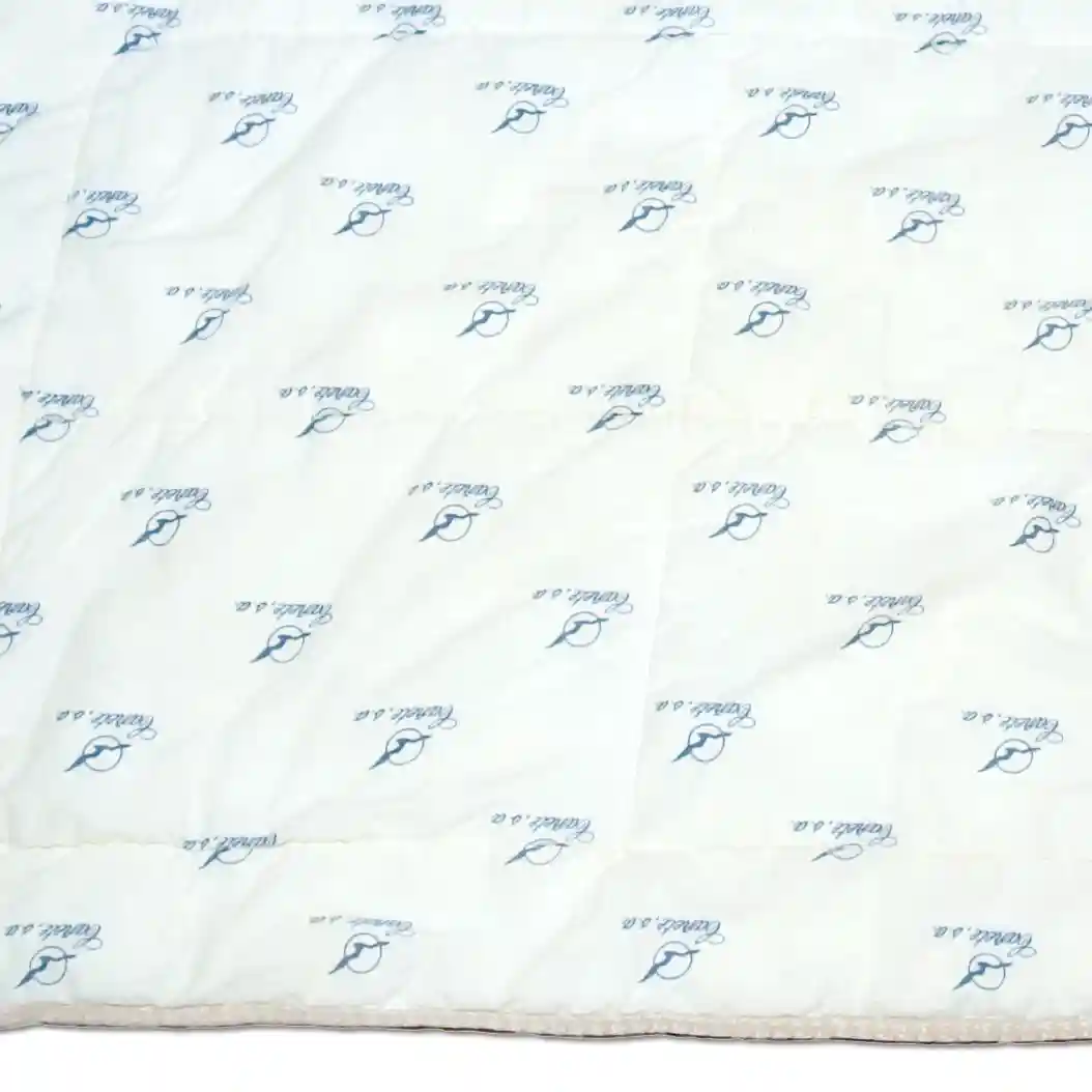 Edredón de plumas color blanco, que debido a la acumulación de suciedad y a haber sido guardado durante varios meses sin limpiar, presentó un marcado tono amarillento, ofreciendo un aspecto apagado y desagradable.